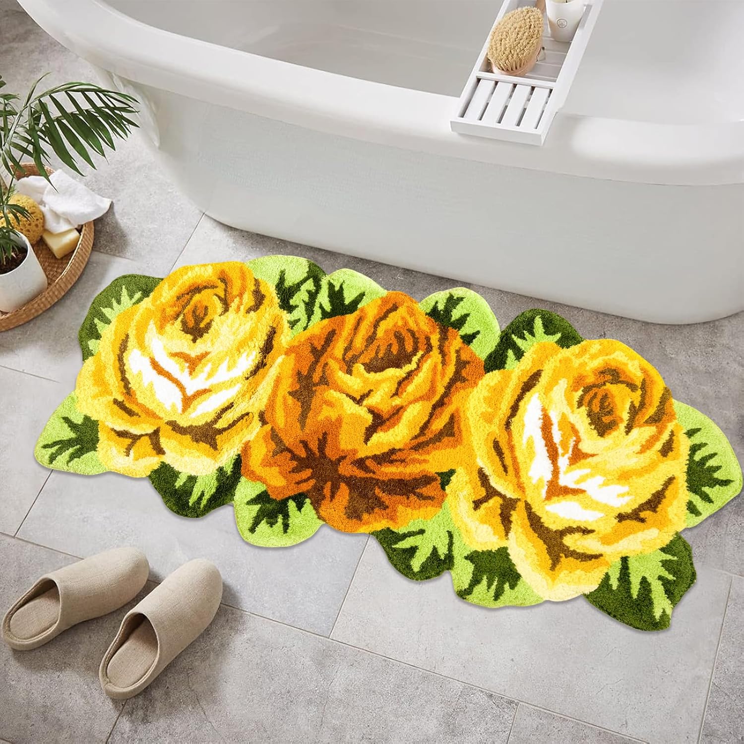 The rose rug has high quality, flower shaped design,let your floor look romantic,warm and fashion. Use about 30 degrees below the water cleaning, neutral detergent cleaning, cleaning after dehydratioand gently shake the fluffy, outdoor dry, avoid direct sunlight exposure.