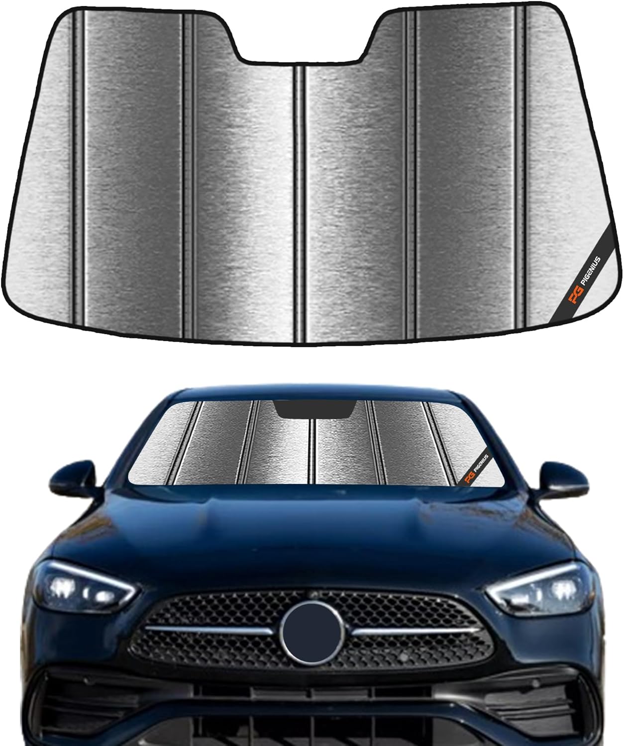 Pigenius Windshield Sunshade for Mercedes-Benz E-Class Sedan/Wagon 2017-2023 Without OE Dashcam, Custom Front Window Sun Shade - Metallic
